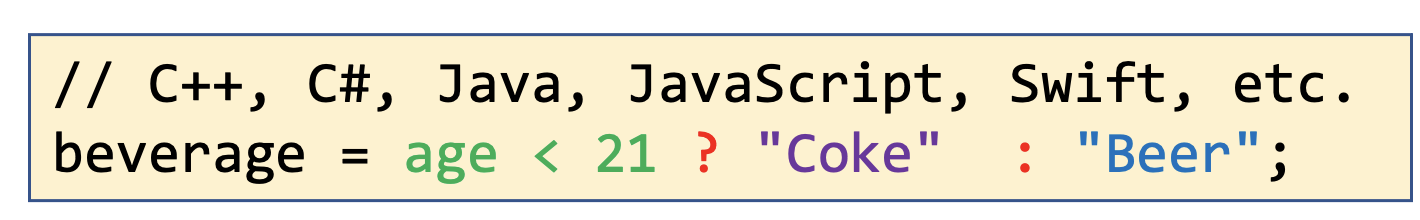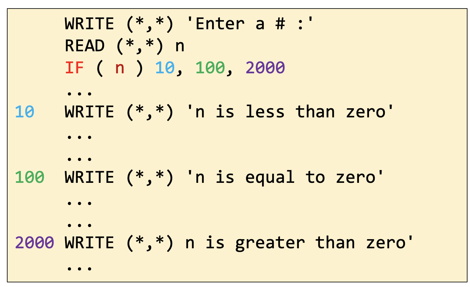 IFwas first used in Fortran to jump to line numbers based on flags for whether the number is negative, zero, or positive - Ternary operator is if else in 1 line w 3 operands