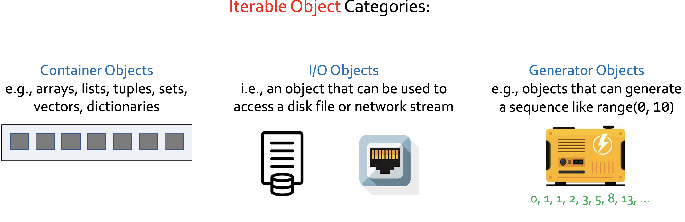 - an iterable object is an object that can be iterated over using an iterator: a collection, list, sequence, range, etc.