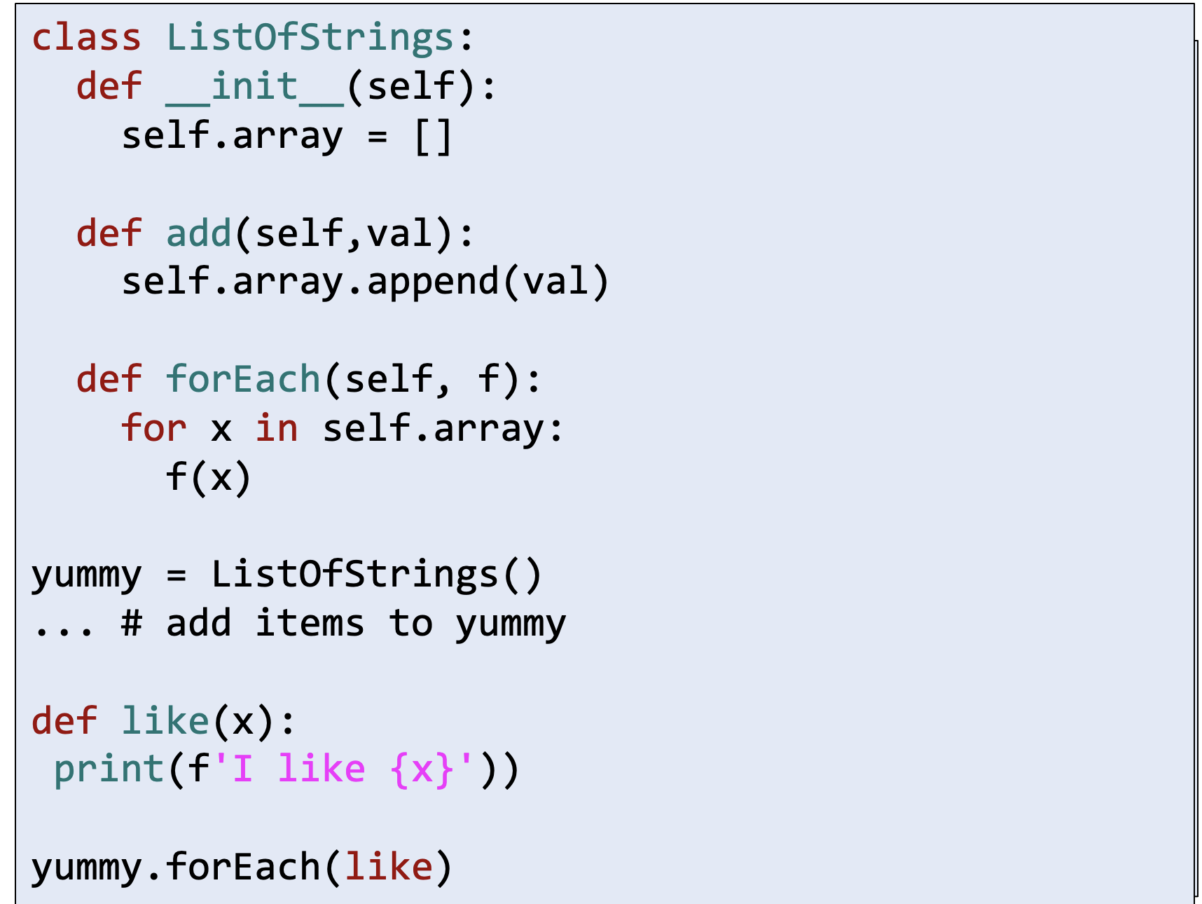 - we can create a simple mapping member function that does a for each loop and calls the passed function
