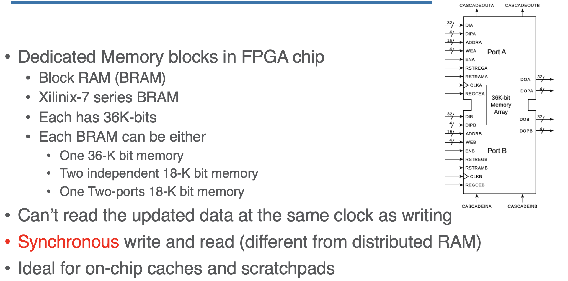 - bc fpgas are slow at arithmetic, we include dediated DSPs: